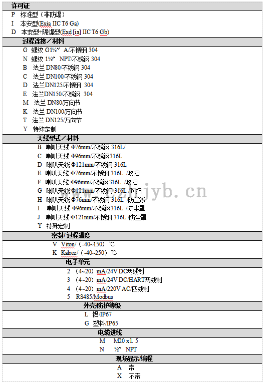 過程溫度(天線部分的溫度) (-40~250)℃